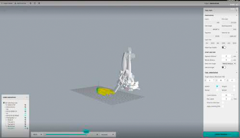 Permite dezvoltarea ușoară a procesului de slicing și configurarea parametrilor de imprimare printr-o interfață intuitivă. Utilizatorii pot vizualiza platforma robotică într-un mediu virtual pentru a simula procesul de imprimare și pot alege metoda de imprimare potrivită: planară, în unghi sau non-planară.
