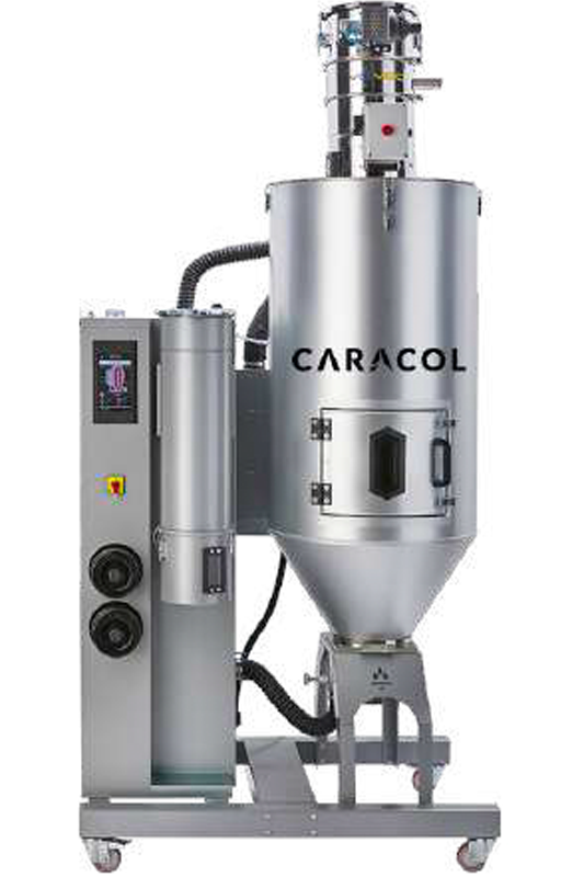 Există mai multe dimensiuni și configurații ale sistemului de uscare și alimentare, adaptate pentru diferite extrudere, pentru a asigura combinația optimă și un proces stabil.