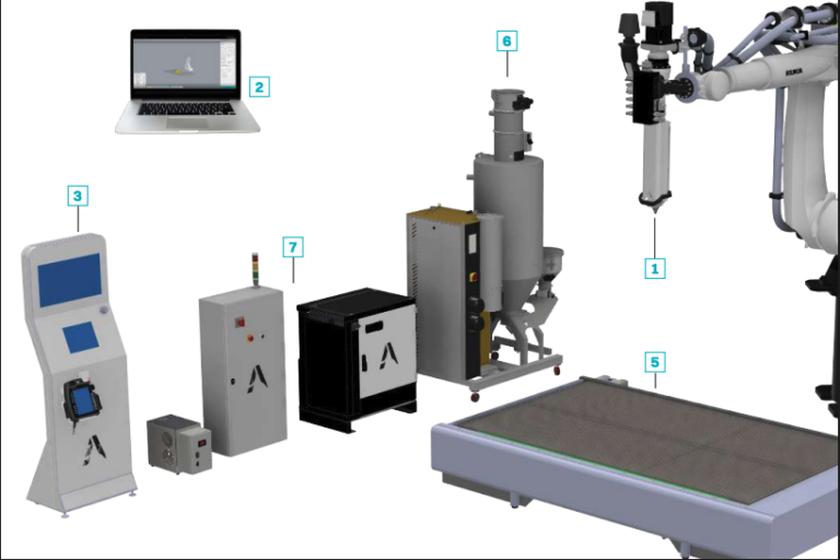 Sistemul poate fi configurat modular în funcție de nevoile de producție și aplicații – de la sisteme de diferite dimensiuni până la roboți colaborativi sau celule hibride, care pot integra procese de la imprimare până la post-procesare.