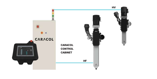 o unitate centralizată unică de control – Caracol Control Cabinet, care poate fi utilizată cu mai multe end-effector-e printr-o logică plug-and-play.
