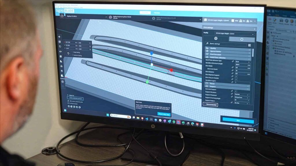 Parteneriatul ne permite să experimentăm pe propriile noastre echipamente BigRep, având în același timp acces la suportul ingineresc BigRep. Putem trimite designuri, primi feedback legat de slicing, materiale și optimizarea printului. Uneori spunem: „Haideți să încercăm asta la BigRep”, iar echipa voastră testează diferite setări de slicing, materiale și orientări de print. După ce totul este optimizat, ne trimiteți G-code-ul și îl rulăm pe imprimantele noastre STUDIO, cu încrederea că va funcționa. Acest proces colaborativ ne-a permis să aducem plenumul pentru răcirea cutiei de viteze de la o greutate mai mare decât piesa originală din carbon, până la a-i egala greutatea.