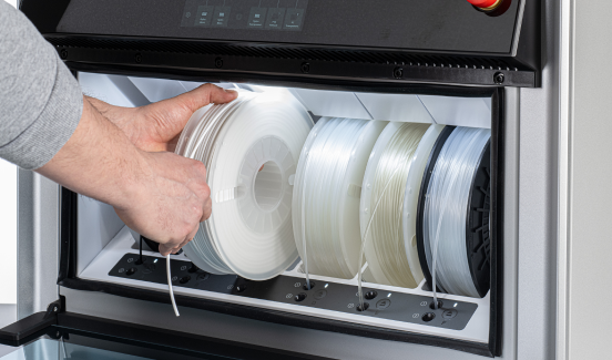 Factor 4 îmbunătățește fabricarea cu o cameră de construcție triplă izolată și extrudare duală directă. Sistemul automatizat de gestionare a materialelor menține calitatea filamentului. Designul robust, cu control al temperaturii, asigură o producție consistentă, chiar și pentru designuri complexe și provocatoare.