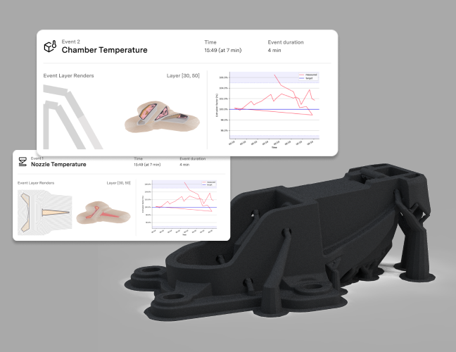 După fiecare lucrare, primești un raport detaliat despre deviațiile parametrilor de extrudare față de valorile nominale, locațiile lor și severitatea acestora în modelul 3D.