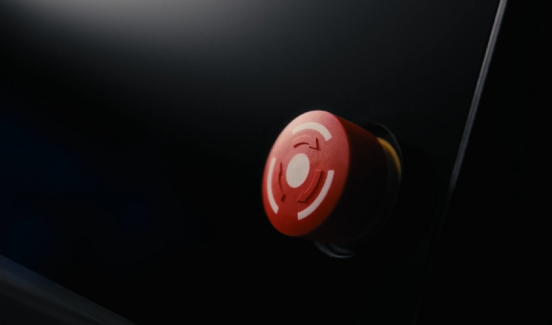 Un buton STOP roșu, bine vizibil, asigură operarea ușoară și în siguranță în caz de necesitate.
